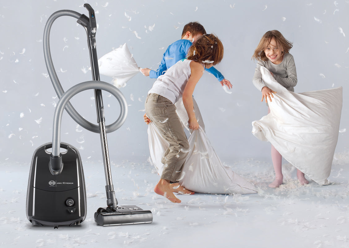 The AIRBELT E1 Kombi is the perfect lightweight and compact canister vacuum for those seeking quiet operation and powerful suction. Designed for efficiency and convenience, it features hospital-grade filtration and a 37-foot cleaning radius, thanks to its 25-foot cord. The large 3.5-litre filter bag ensures efficient maintenance for thorough cleaning. With three onboard attachments and quick-release connections on the durable telescopic wand, cleaning becomes a streamlined process. Rubber-coated wheels and a soft-foam bumper protect your floors, furniture, and walls from scuffs and scratches.