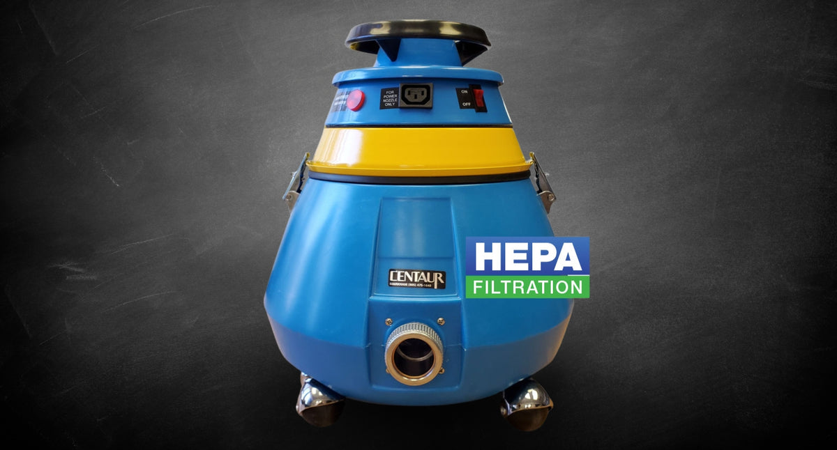 If you are looking for a heavy-duty commercial/industrial canister vacuum, the Silento-31 Commercial vacuum is a 12-litre capacity machine equipped with a two-speed, High/Low switch and a powerful 1030-watt motor. This vacuum is quiet enough to enjoy the radio during the machine's operation. Designed for longevity under heavy use conditions, Silento 31 is a durable answer to your contract cleaning vacuum needs. The vacuum with all filter options in place has a triple-filter system that meets all HEPA requirements. The Centaur Silento 31 is ideal for hospitals, daycares, construction and trades such as painters, millwork, rough or fine finish trades, warehouses, offices, institutional applications or any application with commercial carpets and bare floors. The modified triangular shape and the position of the casters make the vacuum extremely stable and maneuverable. These non-marking casters are made with two rows of heavy-duty, long-lasting ball bearings for years of smooth movement. The 10-foot long, 1.5" diameter, crush-proof hose and 40-foot long power cord make it easy to maneuver into tight areas while still reaching long distances from the power outlet. Removable paper filter, cloth filter, fine dust filter, and HEPA filter are easily maintained and replaced. The vacuum removes dust as small as a bacterium, or 0.3 microns in size with all filters. The base unit comes with a hose, one paper filter, one washable cloth filter, and one fine particle filter. The HEPA filter that comes with the vacuum traps 99.97% of dirt and allergens.
