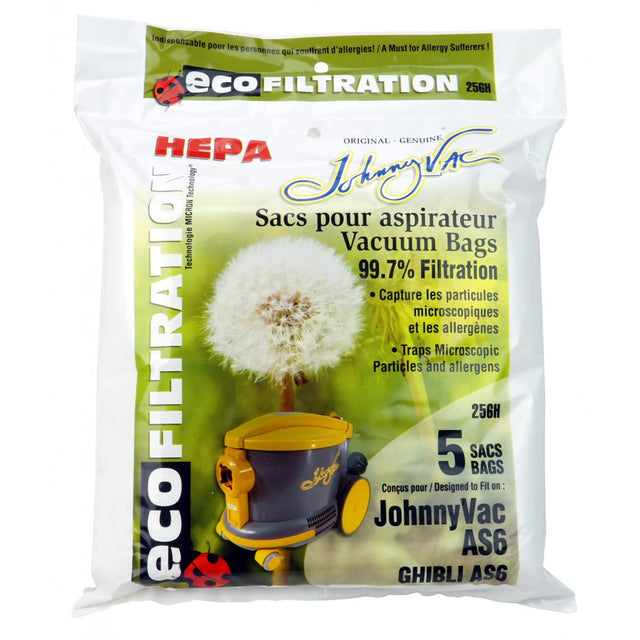 HEPA Microfilter Bag for Johnny Vac Commercial Vacuum Ghibli AS10 - Pack of 5 Bags