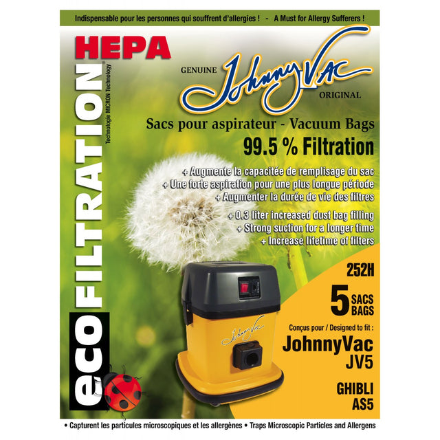 Johnny Vac Ghibli AS5 (JV5) HEPA Microfilter Bag (5 bags)