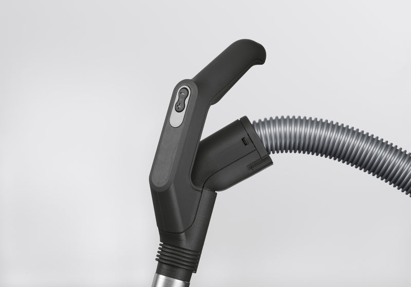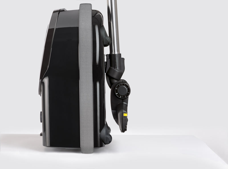 The AIRBELT D4 Premium is a full-sized canister vacuum engineered for quiet operation and powerful cleaning. Perfect for homes with wall-to-wall carpets and significant pet hair, it features a tapered suction hose to boost airflow and reduce the risk of clogs. The D4 Premium includes a commercial-grade, height-adjustable electric powerhead, offering deep cleaning on all types of carpets and area rugs. With a 12-inch wide powerhead and four manual brush height adjustments, the vacuum can easily switch to straight suction for delicate rugs and hard floors. Its 180° steering ensures excellent maneuverability.